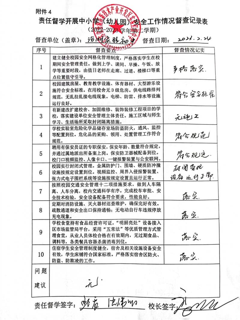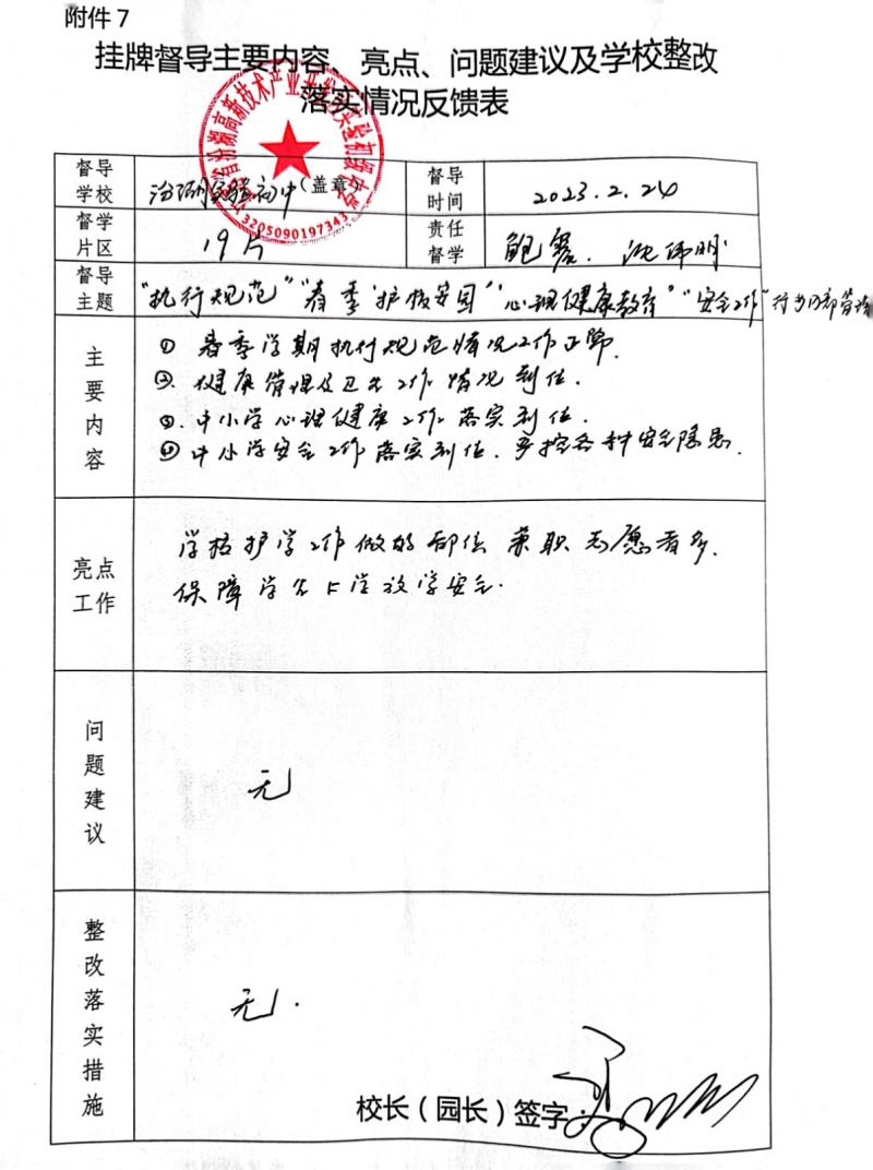 全面了解教育教学常规、疫情防控、学生心理健康、校园安全、“双减”工作等落实情况。