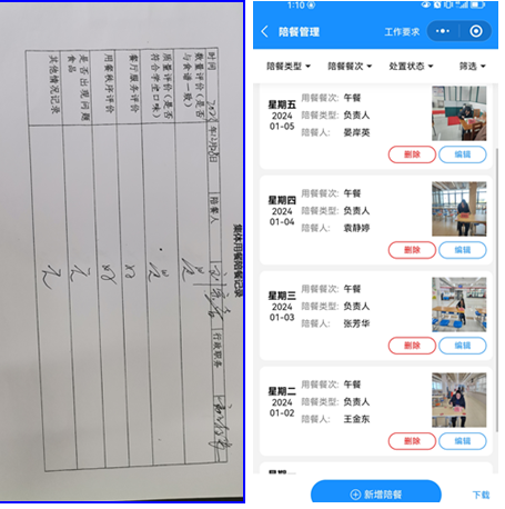 七、深入开展食品安全教育工作,提升师生食品安全防范意识。实行行政陪餐制,每日与学生一同就餐,了解饭菜的品质和口味等,并及时填写陪餐记录。