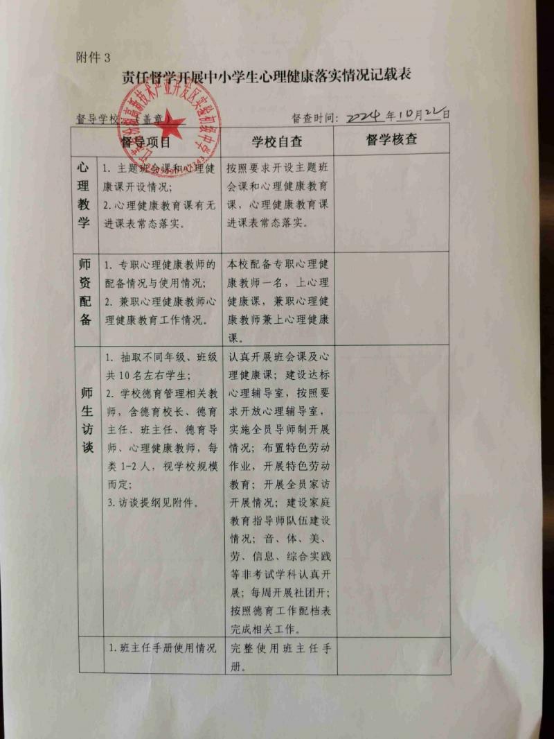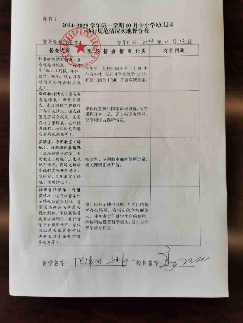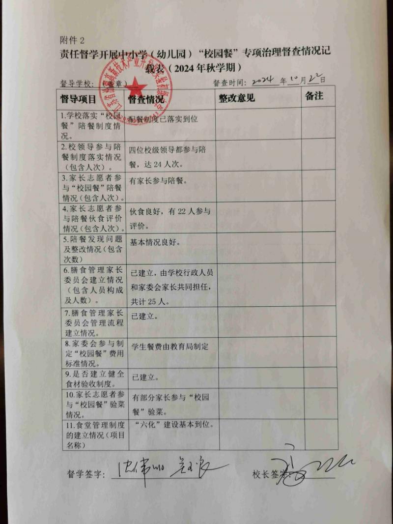 为进一步规范中小学校园餐管理,筑牢校园食品安全底线,督导组成员对我校校园餐专项进行督查。督导组通过听取校长汇报,随机访谈,查看资料,查看现场等方式,进行详细检查并记录。同时对我校作息时间,课程执行,专用教室使用情况以及挂牌责任督导情况进行了解,同时对学生心理健康落实情况进行了询问,并随机抽查了部分学生参加座谈会,近距离了解情况。对我校的执行工作给予了肯定,同时也指出了存在的问题和不足。
